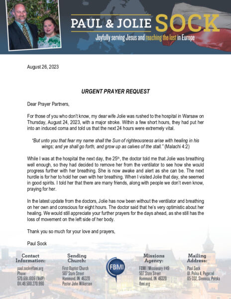 View Larger Image Paul Sock Prayer Letter – URGENT PRAYER REQUEST Proofreader2023-08-26T12:44:33-05:00August 26th, 2023| Share with others. FacebookXLinkedInEmail