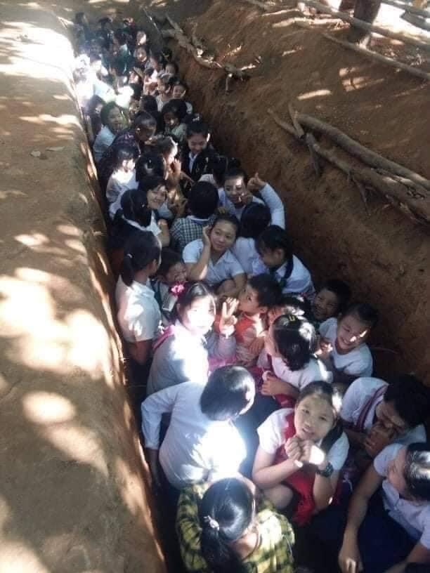 - These high school students are hiding in a ditch dug by the UN and Christian leaders to keep the students safe.