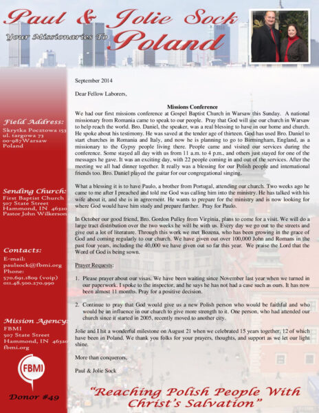 View Larger Image Paul Sock September 2014 Prayer Letter Proofreader2014-10-04T15:47:35-05:00October 4th, 2014| Share with others. FacebookXLinkedInEmail
