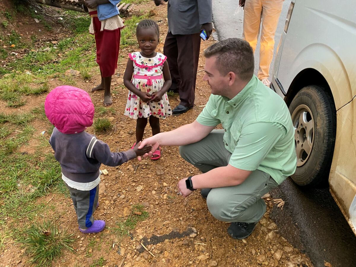 - Brandon Heselschwerdt, one of our team members, meeting some of the local children