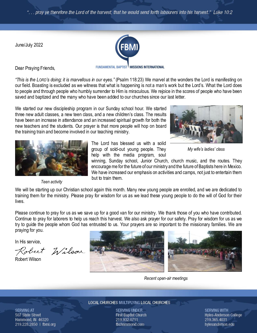 View Larger Image Robert Wilson Jun-Jul 2022 Prayer Letter Proofreader2022-09-07T18:11:11-05:00September 7th, 2022| Share with others. FacebookXLinkedInEmail
