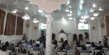 - Juan sharing his testimony during a meeting at a rehabilitation center