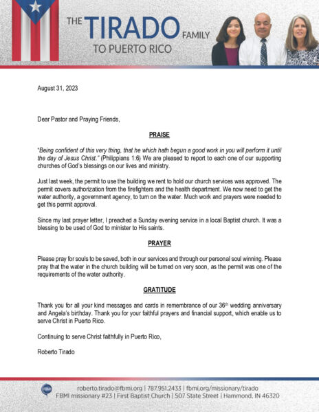 View Larger Image Roberto Tirado August 2023 Prayer Letter Proofreader2023-08-31T10:53:20-05:00August 31st, 2023| Share with others. FacebookXLinkedInEmail