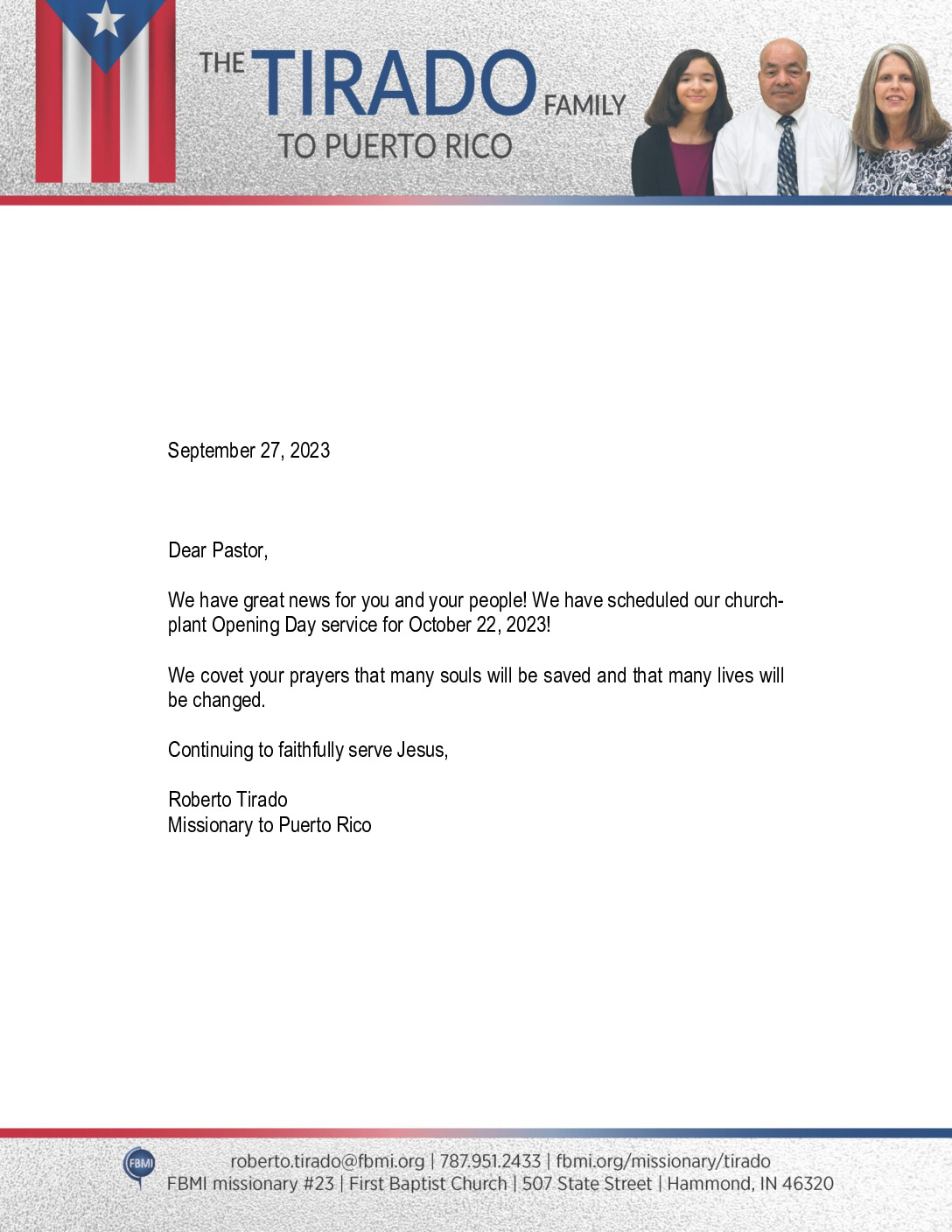 View Larger Image Roberto Tirado Church-Plant Update Proofreader2023-10-10T12:31:48-05:00October 10th, 2023| Share with others. FacebookXLinkedInEmail