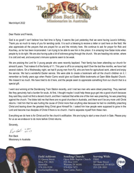 View Larger Image Ron Back Mar-Apr 2022 Prayer Letter Proofreader2022-05-10T15:49:34-05:00May 10th, 2022| Share with others. FacebookXLinkedInEmail