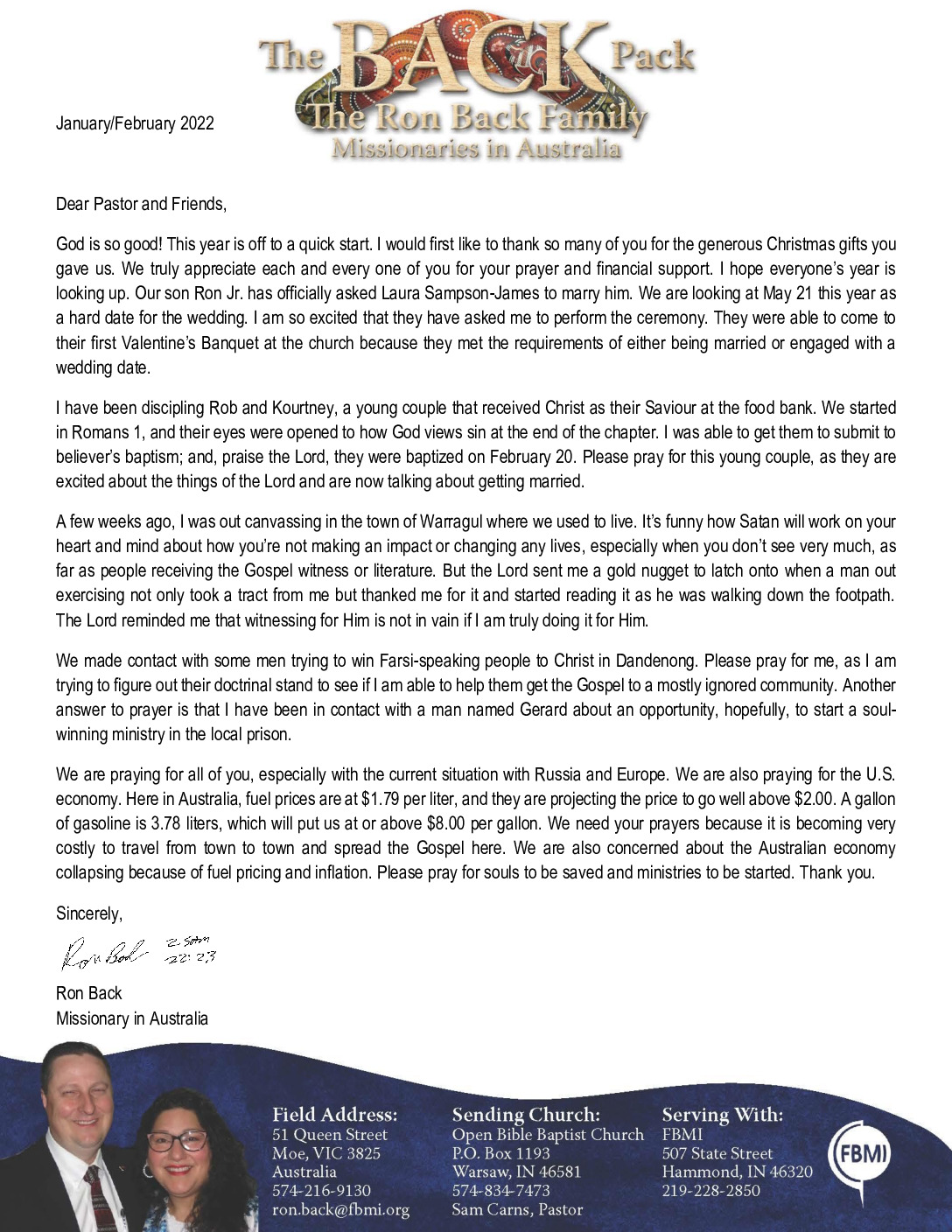 View Larger Image Ron Back Jan-Feb 2022 Prayer Letter Proofreader2022-02-25T20:18:14-06:00February 25th, 2022| Share with others. FacebookXLinkedInEmail