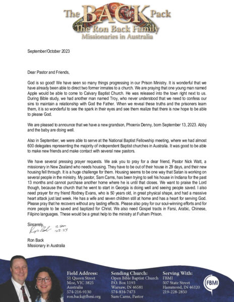 View Larger Image Ron Back Sep-Oct 2023 Prayer Letter Proofreader2023-11-10T10:39:00-06:00November 10th, 2023| Share with others. FacebookXLinkedInEmail