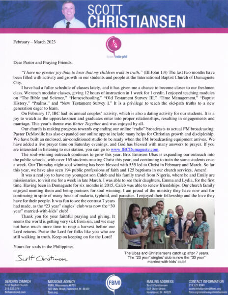 View Larger Image Scott Christiansen Feb-Mar 2023 Prayer Letter Proofreader2023-04-20T20:11:36-05:00April 20th, 2023| Share with others. FacebookXLinkedInEmail