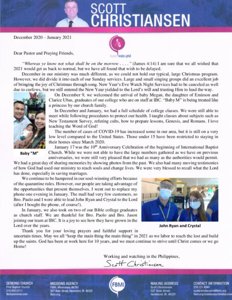 View Larger Image Scott Christiansen Dec 2020 – Jan 2021 Prayer Letter Proofreader2021-02-04T22:46:17-06:00February 4th, 2021| Share with others. FacebookXLinkedInEmail