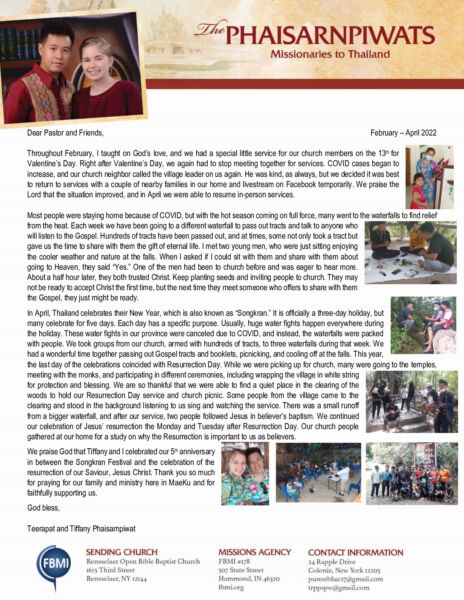 Teerapat Phaisarnpiwat Feb-Apr 2022 Prayer Letter – Revised