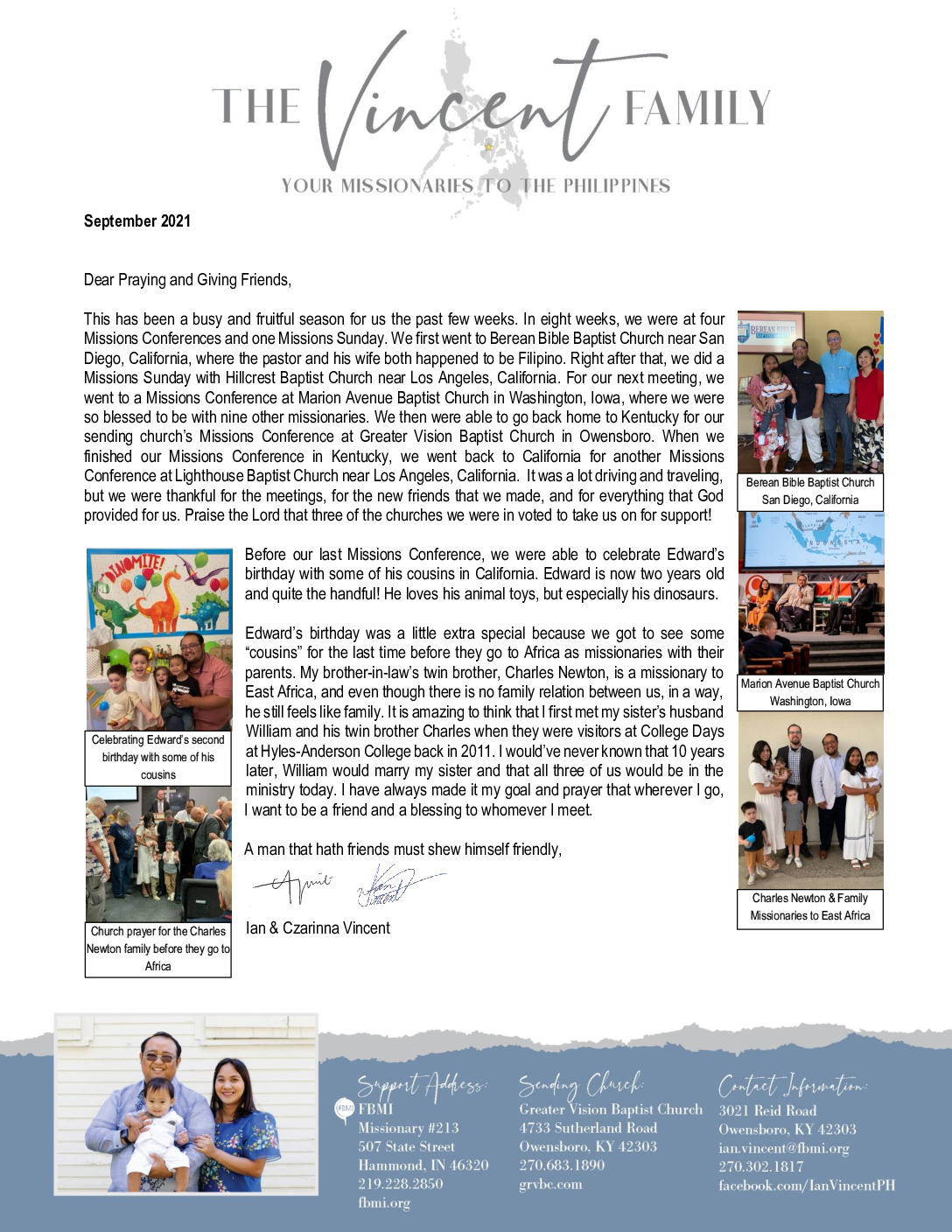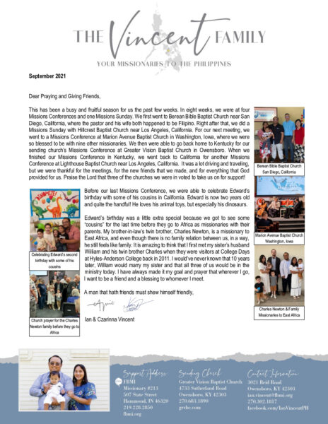 View Larger Image Ian Vincent September 2021 Prayer Letter Proofreader2021-12-03T15:08:29-06:00December 3rd, 2021| Share with others. FacebookXLinkedInEmail