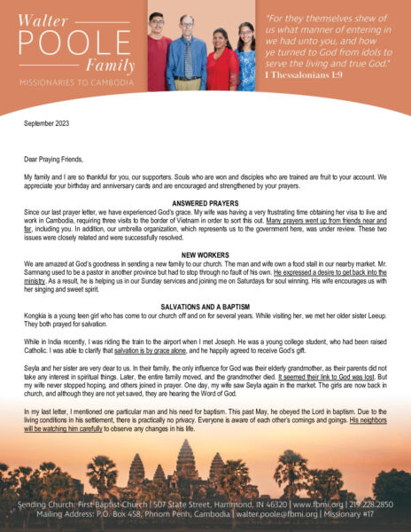 View Larger Image Walter Poole September 2023 Prayer Letter – Revised Proofreader2023-09-22T19:19:12-05:00September 22nd, 2023| Share with others. FacebookXLinkedInEmail