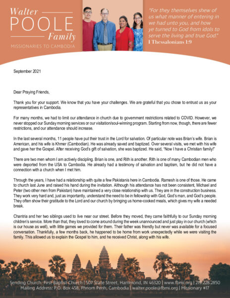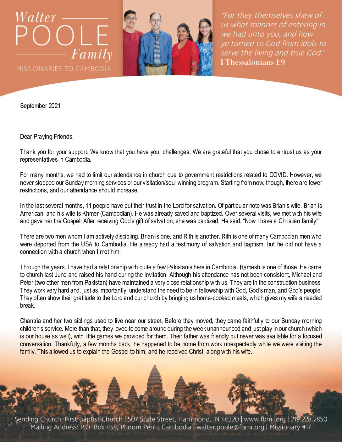 View Larger Image Walter Poole September 2021 Prayer Letter Proofreader2021-09-05T12:22:27-05:00September 5th, 2021| Share with others. FacebookXLinkedInEmail