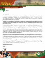 There are two reasons to write you at this time. One is to inform you of my mother’s passing on June 5. Although she was not of our faith, she was generous and financially helped us many times. She had high standards for behavior and maintained her personal discipline through the last days of her 90-plus-year life. She continued to give advice and even recently urged me on a certain course of action, which she felt would be beneficial to my children. My mother remembered our birthdays and, up until a few years ago, was still sending cards and gifts to our children all the way to Cambodia.