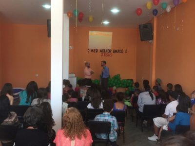 On the second Sunday of October, we celebrated Children’s Day here in Brazil, and it was by far the most exciting day of our young church’s short existence. What was most special to me as a pastor was watching these “baby” Christians get very involved in our church’s outreach plan for that day. We had a single mother who made candy bags, came up with a theme, prepared a bunch of decorations, and then spent several hours on Saturday getting everything set up. For most of the day that Saturday, we had a great group of young people that went out door knocking with us to promote the special day. With all of their hard work, and also with some great help from some dear friends from Nevada who were visiting during that week, we had over 40 attend our Spanish service and over 90 come to our Portuguese service that Sunday morning! There were many hands raised for salvation, many positive comments about the church, and a few families that have come back since that day that we are hopeful will begin to attend all weekly services faithfully. God is good! This is just a small bit of what your prayers and giving have produced here on our field. We are very grateful to you for allowing us to continue the work that God has given us to do.