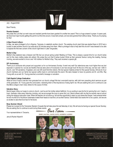 View Larger Image Jerry Wyatt III Jul-Aug 2022 Prayer Letter Proofreader2022-06-29T09:50:58-05:00June 29th, 2022| Share with others. FacebookXLinkedInEmail
