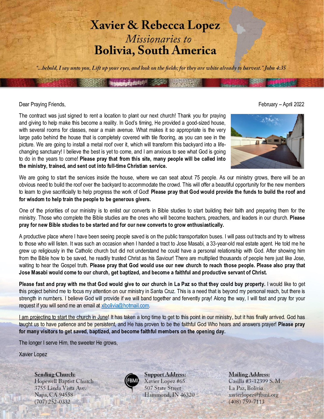 View Larger Image Xavier Lopez Feb-Apr 2022 Prayer Letter Proofreader2022-04-28T13:45:35-05:00April 28th, 2022| Share with others. FacebookXLinkedInEmail