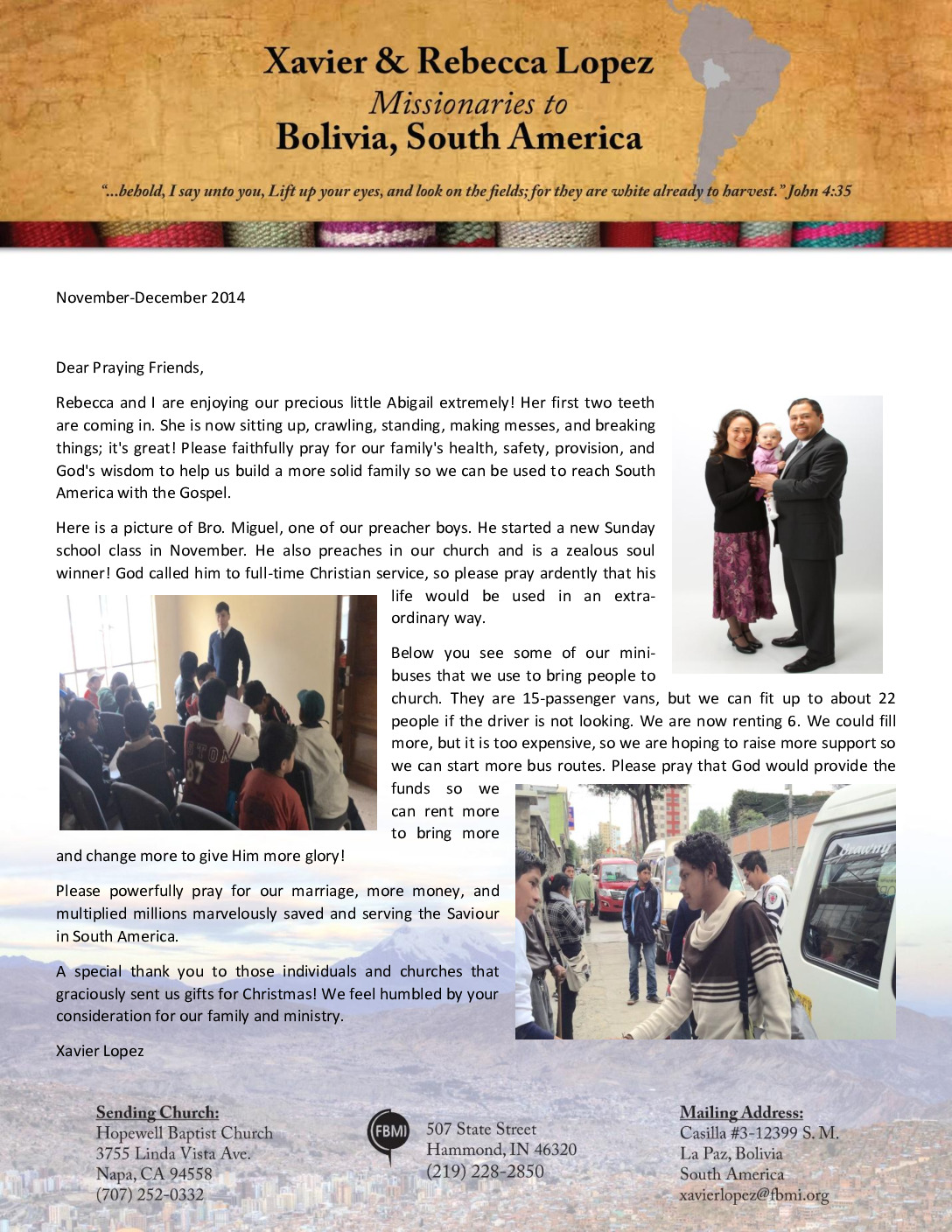 View Larger Image Xavier Lopez Nov-Dec 2014 Prayer Letter Proofreader2015-02-27T21:43:09-06:00February 27th, 2015| Share with others. FacebookXLinkedInEmail