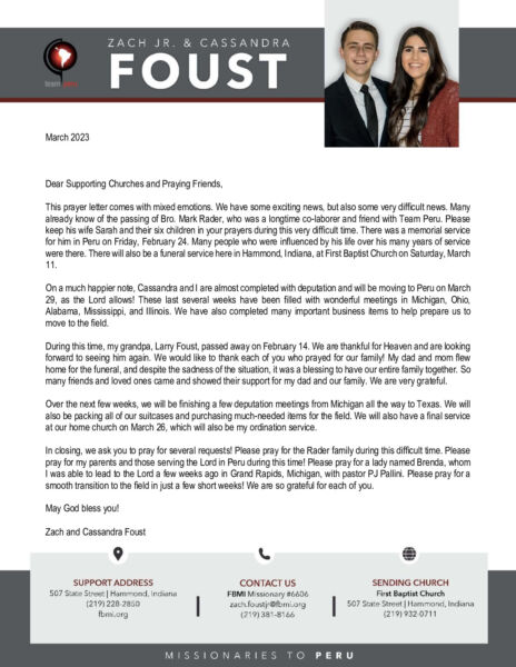 View Larger Image Zach Foust Jr. March 2023 Prayer Letter Proofreader2023-03-03T13:48:28-06:00March 3rd, 2023| Share with others. FacebookXLinkedInEmail