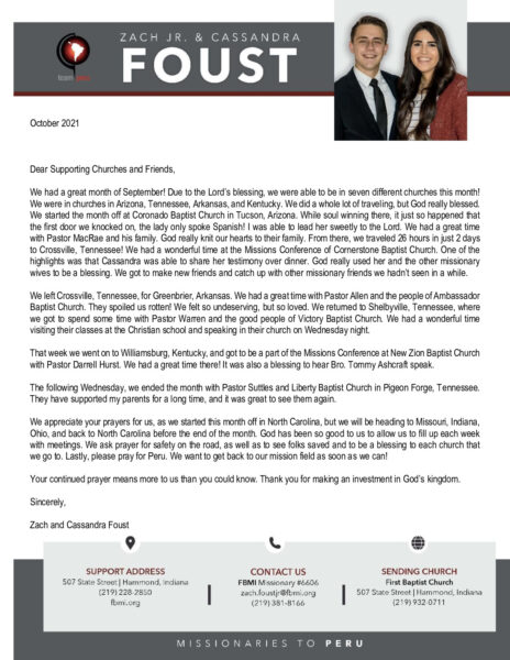 View Larger Image Zach Foust Jr. October 2021 Prayer Letter – Revision Proofreader2021-10-14T19:30:04-05:00October 14th, 2021| Share with others. FacebookXLinkedInEmail