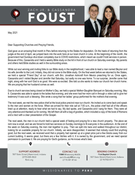 • View Larger Image thumbnail of Zach Foust Jr. May 2021 Prayer Letter