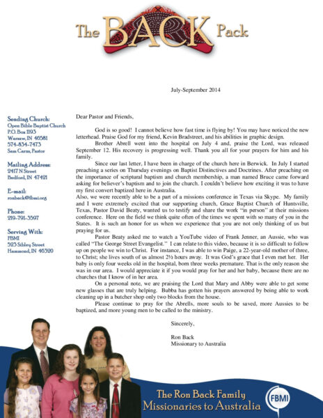 View Larger Image Ron Back Jul-Sep 2014 Prayer Letter Proofreader2014-10-07T14:07:51-05:00October 7th, 2014| Share with others. FacebookXLinkedInEmail