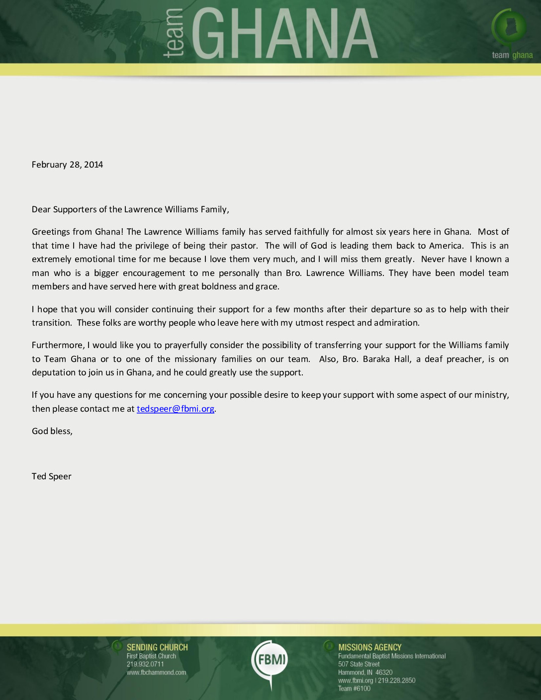View Larger Image Speer Letter for Bro. Williams on Team Ghana Letterhead Proofreader2014-03-04T11:22:04-06:00March 4th, 2014| Share with others. FacebookXLinkedInEmail