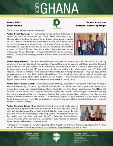 View Larger Image Team Ghana March 2021 National Pastor Update Proofreader2021-03-25T18:56:48-05:00March 25th, 2021| Share with others. FacebookXLinkedInEmail