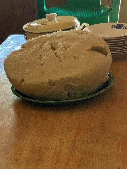 - The pastors were joking that this ugali (maize flour and boiling water) was as big as Mount Kilimanjaro. You break the ugali off, and then using your hands, you eat it with the rest of your food, including beans, local green vegetables, and goat, beef, or fish.