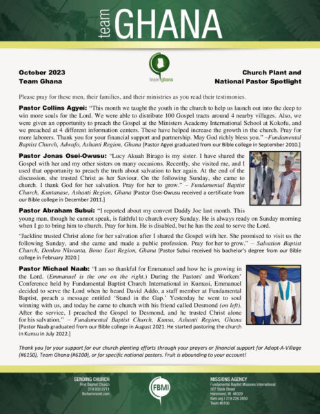 View Larger Image Team Ghana October 2023 National Pastor Update Proofreader2023-10-26T10:13:29-05:00October 26th, 2023| Share with others. FacebookXLinkedInEmail
