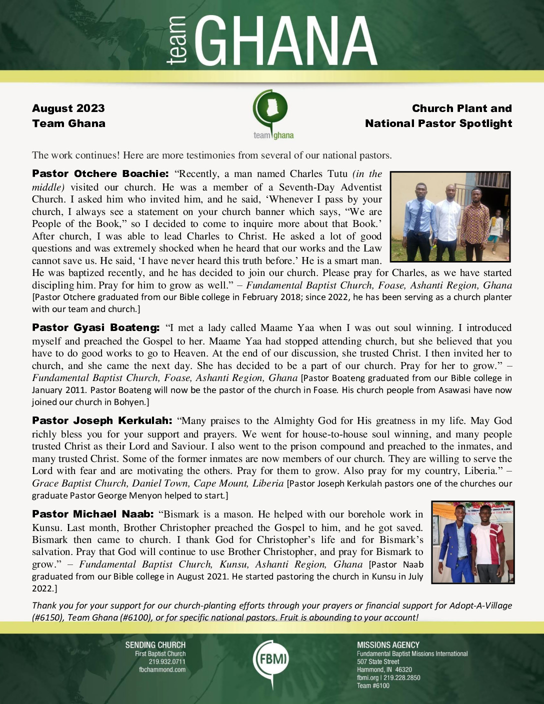 View Larger Image Team Ghana August 2023 National Pastor Update Proofreader2023-08-29T13:14:13-05:00August 29th, 2023| Share with others. FacebookXLinkedInEmail