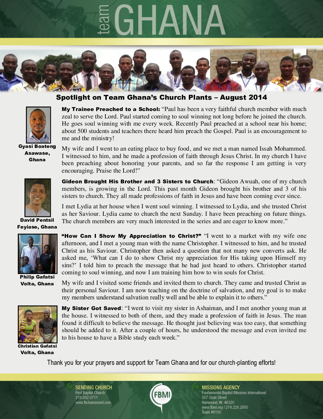 View Larger Image Team Ghana August 2014 National Pastor Update Proofreader2014-09-25T14:26:48-05:00September 25th, 2014| Share with others. FacebookXLinkedInEmail