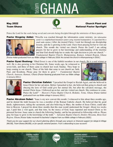 View Larger Image Team Ghana May 2022 National Pastor Update Proofreader2022-05-27T11:14:03-05:00May 27th, 2022| Share with others. FacebookXLinkedInEmail