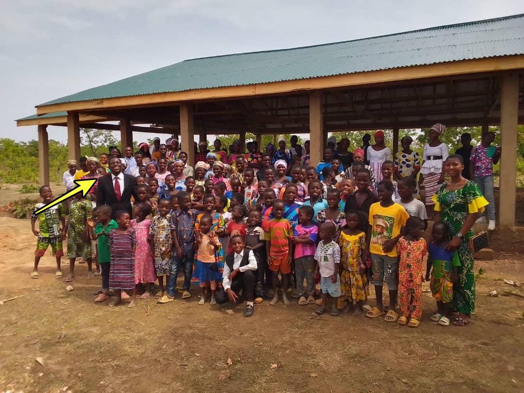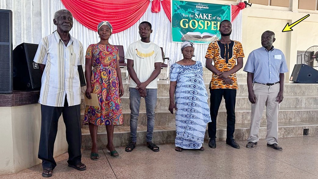 - Recent new members of FBCI Kumasi–the arrow points to a man reached by our radio ministry.