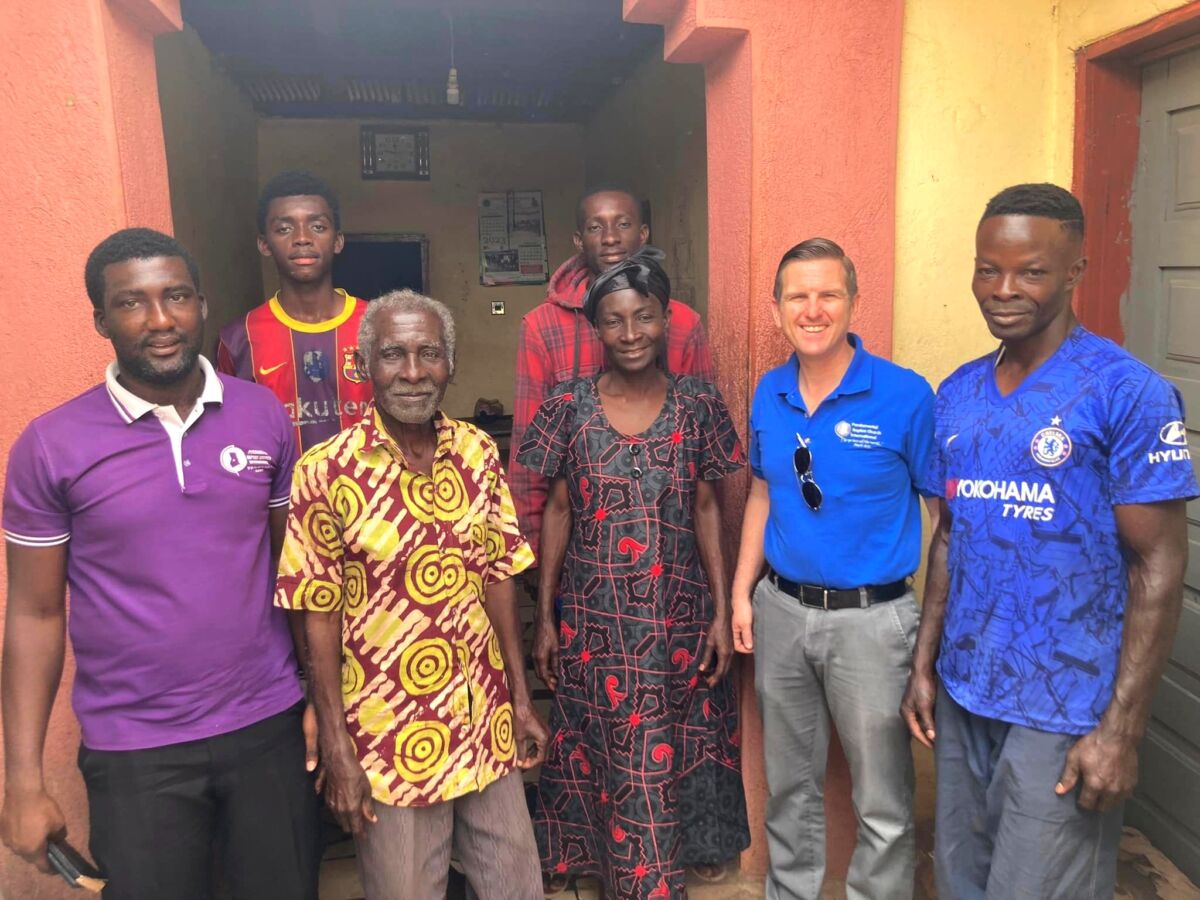 - Missionary Ted Speer with a family from the bus route of Brother David Addo (on far left)