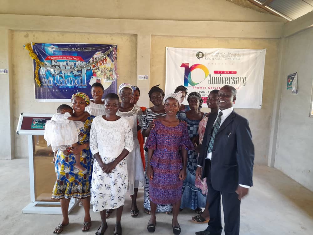 We praise God that in these 6 days, over 1,100 individuals heard a Gospel presentation and professed their faith in Christ! We have received reports from our daughter churches about visitors and new church members as a result of these clinics. For example, Pastor Jonas Osei-Owusu sent us this picture of several helped by the clinics who were in his church this past Sunday. Five of these are new to his church because of the clinics.