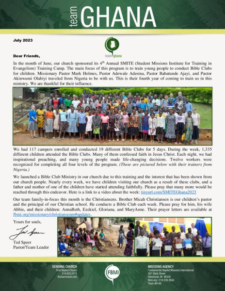 Team Ghana July 2023 Prayer Letter
