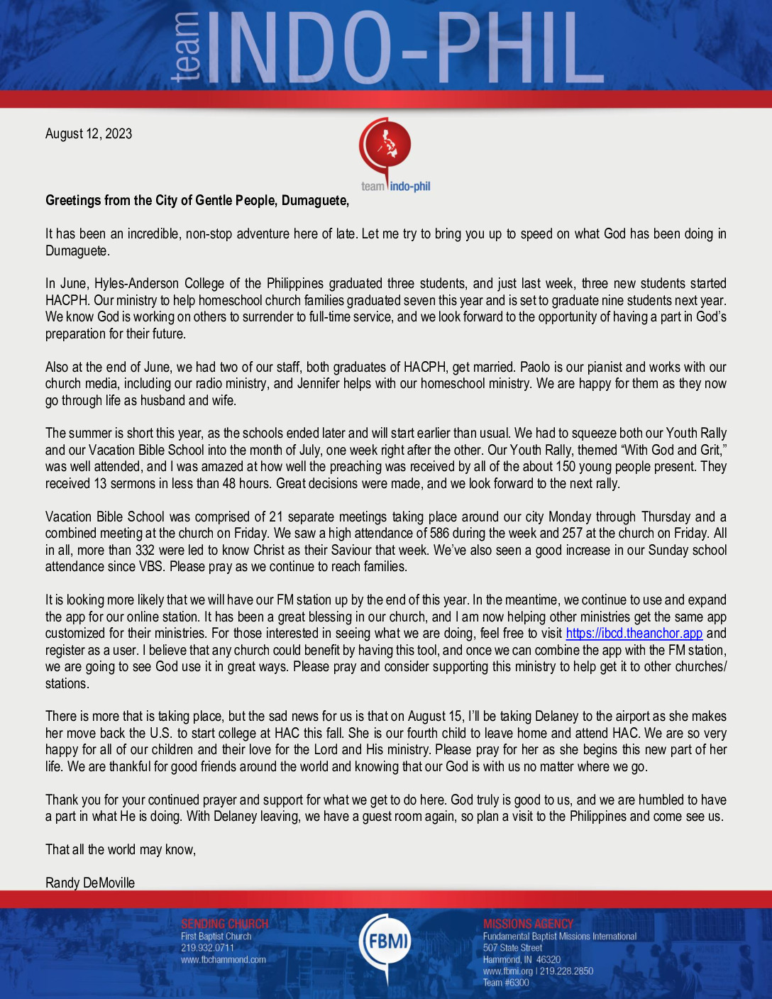 View Larger Image Team Philippines August 2023 Prayer Letter – 2 Proofreader2023-08-12T14:43:30-05:00August 12th, 2023| Share with others. FacebookXLinkedInEmail